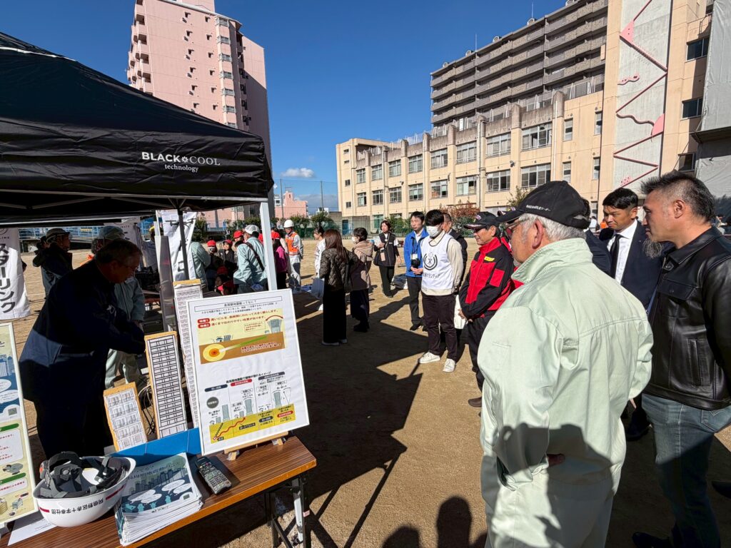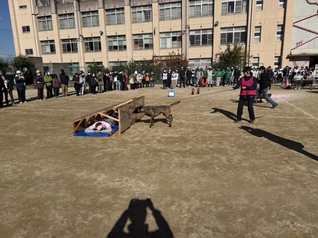 4団体による防災訓練では、ドローン・スターリンク・災害救助犬の展示ブースに加え、倒壊家屋対応、消火活動、トリアージなどの実働訓練が実施されました。