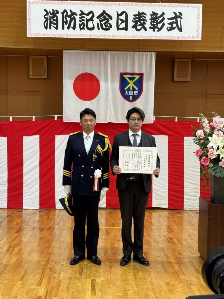 西成消防署にて消防記念日表彰式があり、NPO法人大阪災害ボランティアが優良自衛消防隊として表彰されました。 引き続き地域防災に取り組み、有事の際は皆様の力になれるように日々尽力してまいります。 ニュース 大阪府危機管理室へご挨拶に伺いました。 関連記事 大阪府危機管理室へご挨拶に伺いました。 2026年3月19日 研修会に参加しました。 2026年3月13日 ハラール料理を学びに行きました。 2026年3月6日 ご挨拶に伺いました。 2026年3月2日 お知らせ 2026年2月27日 防災企画展に参加しました。 2026年2月21日 災害に向けての備蓄品の整理について 2026年2月19日 パワースーツの見学会に参加しました。 2026年2月5日